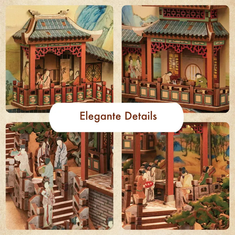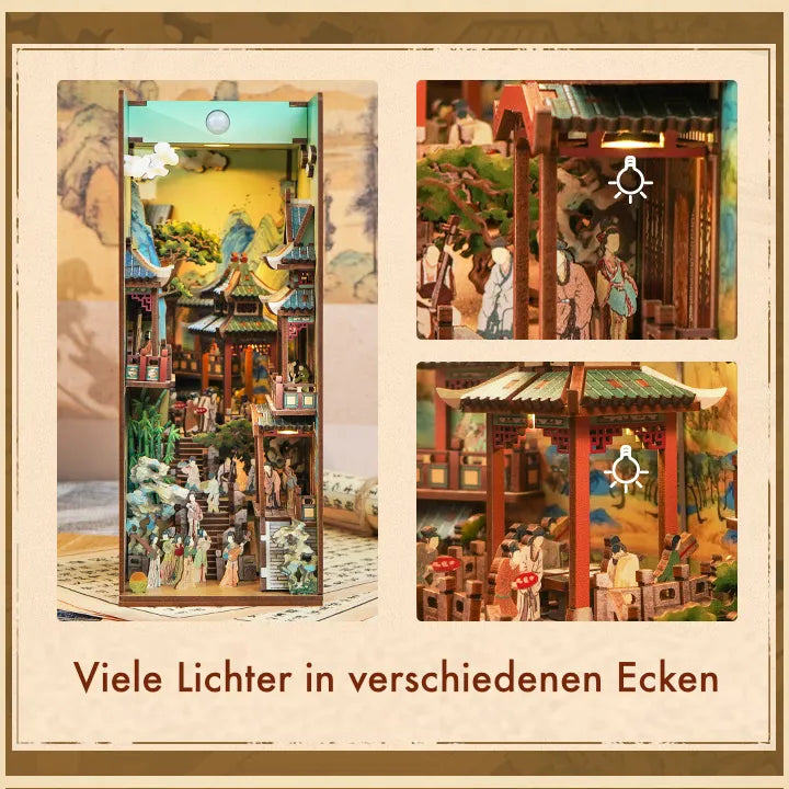 DIY Book Nook - La cultura de la dinastía Song le permite viajar en el tiempo y sumergirse en el pintoresco mundo de la dinastía Song. Experimente la calma y la sabiduría de los eruditos que hallaron inspiración en medio de paisajes, música, ajedrez y pintura. Este escenario en miniatura captura la esencia de la cultura Song e invita a detenerse en la ajetreada vida diaria para disfrutar de la elegancia y profundidad de la antigua civilización china.
