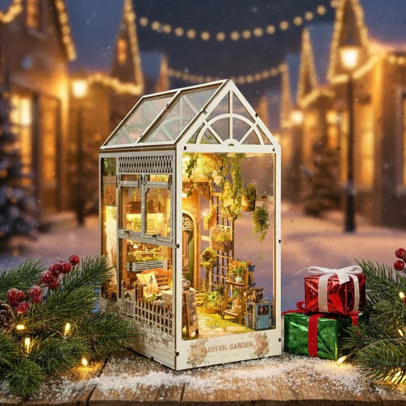 El secreto del jardín se esconde en el techo, donde puede abrir la ventana del tejado y disfrutar de la brisa vespertina. Este Book Nook trae los colores de la primavera a su estantería y le permite redescubrir el placer de la lectura bajo el calor del sol.